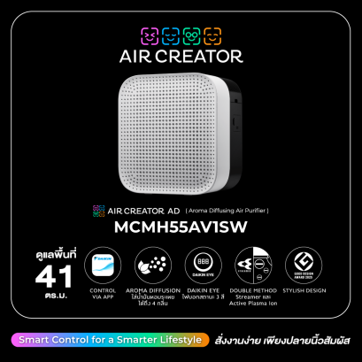✅AROMA DIFFUSION ฟังก์ชันอโรมา เลือกกลิ่นหอมสร้างบรรยากาศให้เข้ากับมู้ดได้ถึง 4 กลิ่น ✅CONTROL VIA APP สั่งงานและตรวจสอบสภาพอากาศได้ทันทีผ่าน สมาร์ทโฟนของคุณ ทุกที่ทุกเวลา ✅IAQ VISUALIZATION WITH DAIKIN EYE ด้วยไฟบอกสถานะ 3 สีที่แตกต่างกัน น้ำเงิน ส้ม และแดง ✅DOUBLE METHOD ฟอกอากาศสะอาดอย่างมีประสิทธิภาพด้วยเทคโนโลยี Streamer และ Active Plasma Ion ✅STYLISH DESIGN ออกแบบอย่างมีสไตล์ คว้ารางวัล Good Design Award 2025