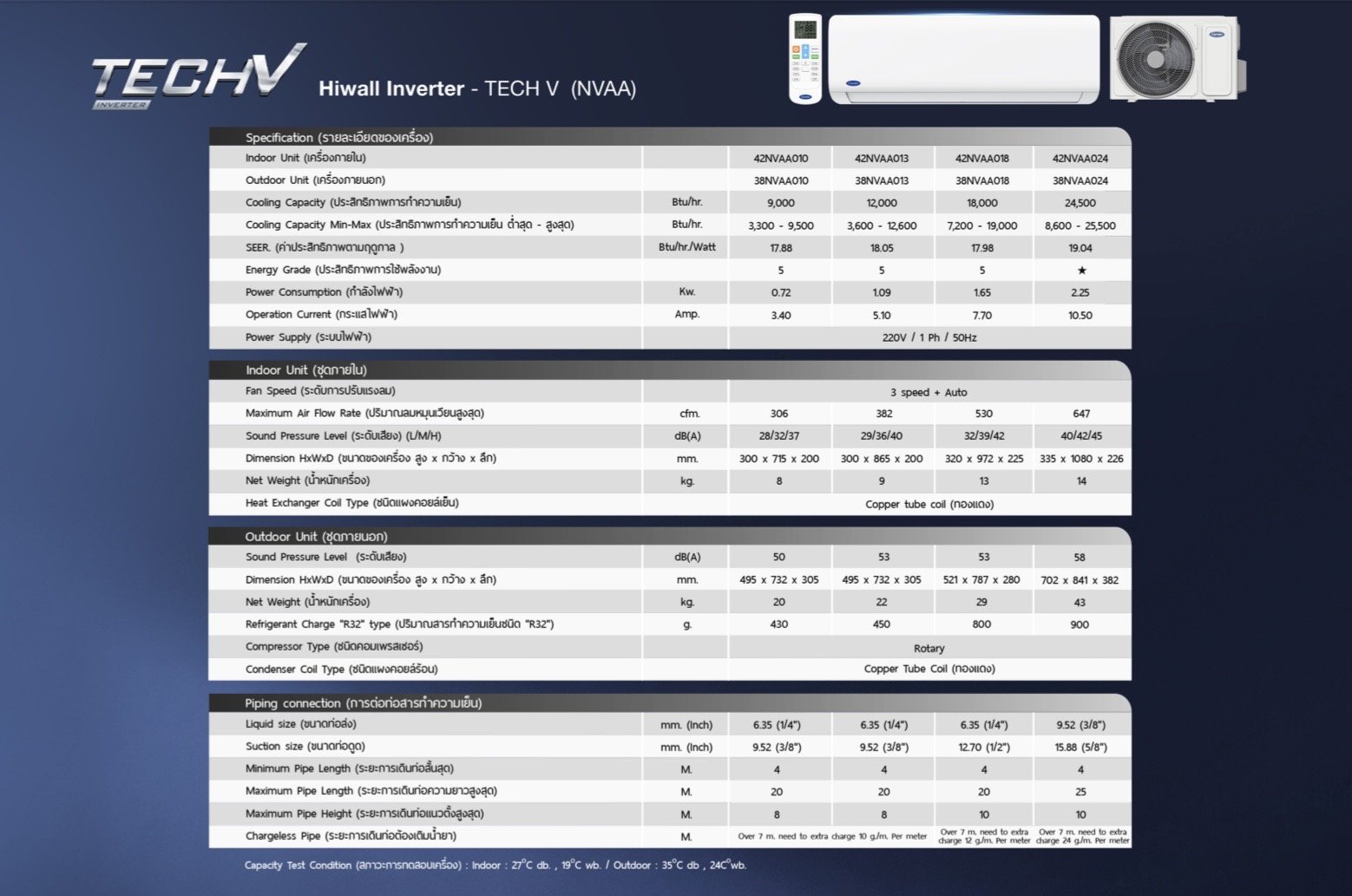 หมวดหมู่ : Carrier -room air ,  42NVAA Inverter รุ่น TECH V ,