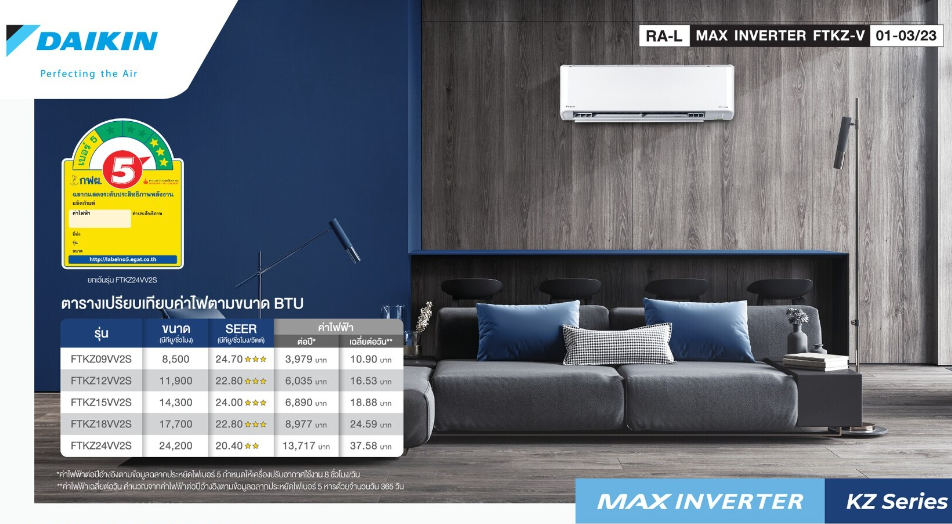 เครื่องปรับปรับอากาศ Daikin MAX STAR INVERTER KZ SERIES รุ่น FTKZ-VV2S
