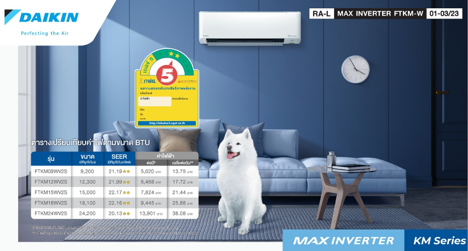 เครื่องปรับปรับอากาศ Daikin Inverter รุ่นMAX STAR KM SERIES รุ่น FTKM-YV2S