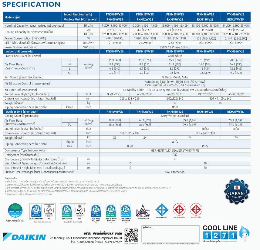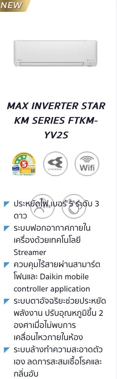 หมวดหมู่ : แอร์ติดผนัง WALL TYPE ,  FTKM-YV2S Wifi+Streamer Series อินเวอร์เตอร์ 2024 ,