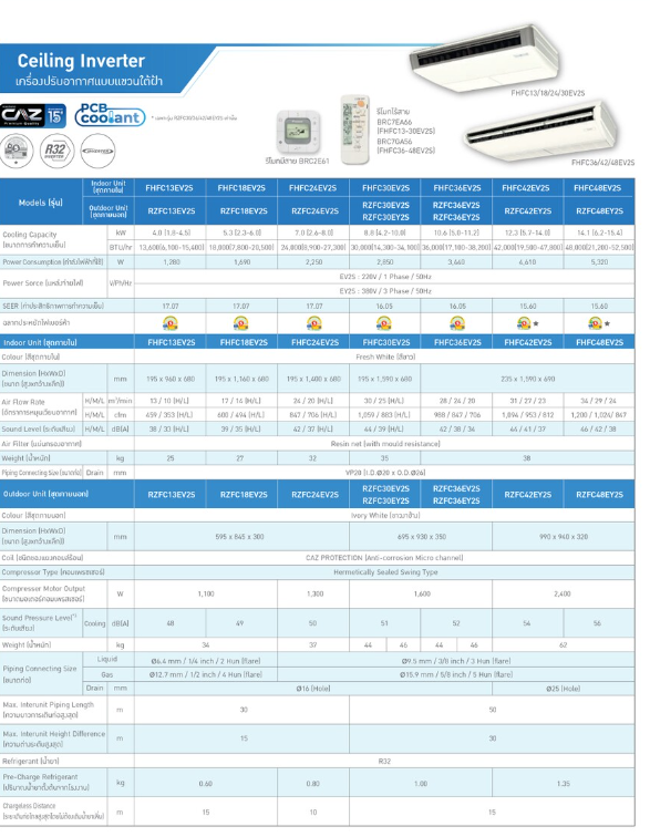 หมวดหมู่ : Sky air INVERTER Ceiling FHFC-EV2S ปี 2024