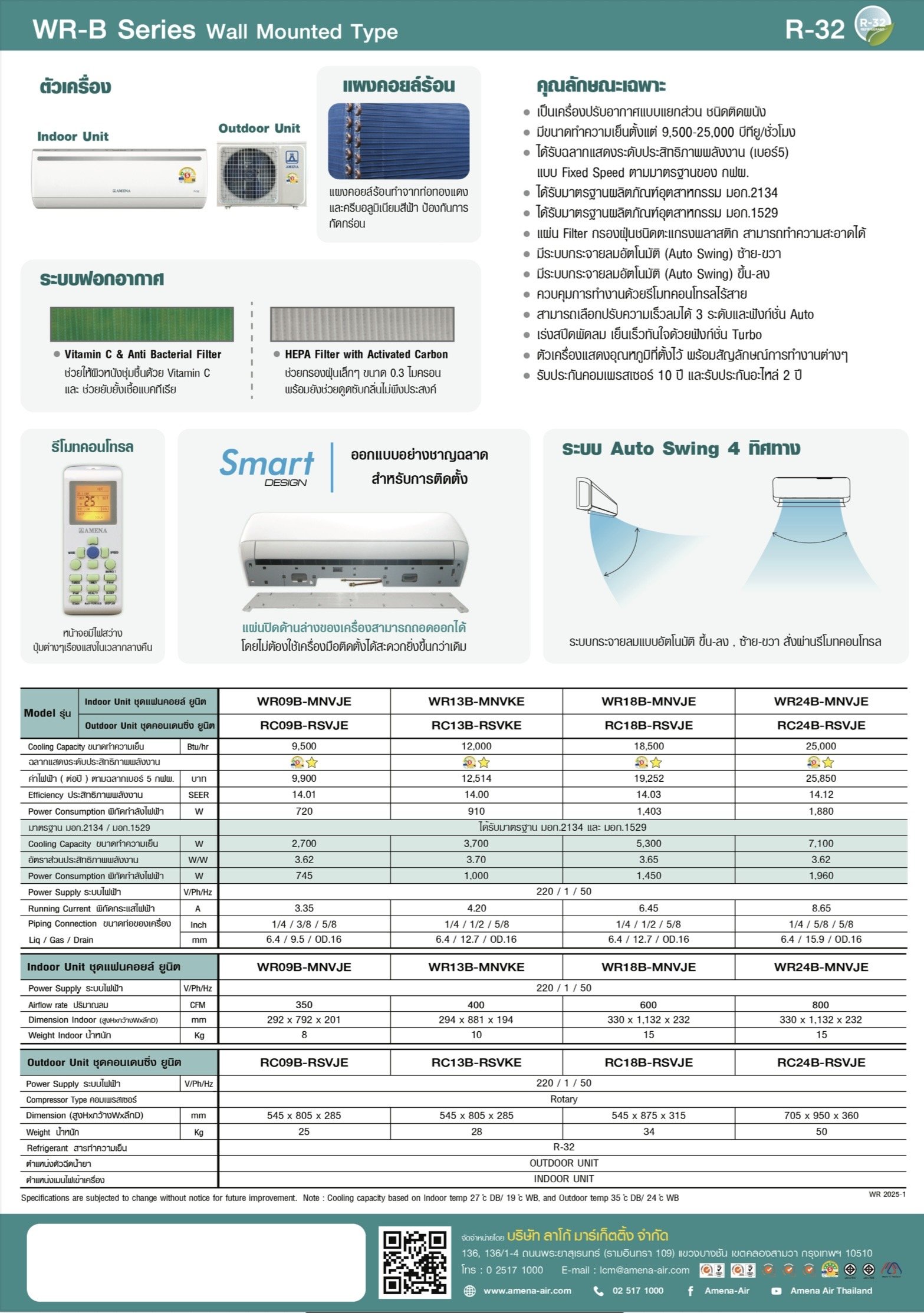 เครื่องปรับอากาศ Amena รุ่น WR SERIES [WR-B-MN]